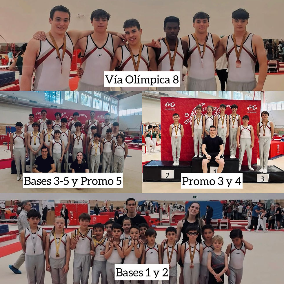 El 24-25 de Mayo se celebró en San Agustín de Guadalix la competición más importante a nivel autonómico: el Campeonato de Madrid Base y Autonómico Vía Olímpica de la FMG. Participamos en los niveles de GAM de Base 1-5 y VO 6 y 8. Todos los gimnastas realizaron una muy buena actuación consiguiendo los siguientes podiums, en las categorías Base estos fueron medallistas: BASE 1: Gabriel Gómez, que quedó campeó en la general y Pablo Rivera, que consiguió metal en suelo, paralelas y barra; en BASE 2: Martín Ayuso y , Aleksander Janocha subieron al podium en la general, siendo este último campeón de la categoría, sus compañeros Rodrigo Ruiz, Samuel Perela y Martín Rodriguez subieron al podium por aparatos; en BASE 3: Guillermo Takeshi fue subcampeón y Diego Muñoz tercero, consiguiendo varias medallas por aparatos, además Carlos Javier Gaviro sumó medallas por aparatos como el oro en anillas; en BASE 4: Albert Luna consiguió el oro en barra además de medallas en paralelas y potro; BASE 5: Adrián Pérez fue primero, Gonzalo Barturen segundo y Lucas Moreno tercero. Y en las categorías Vía Olímpica: en VO6: Asís Barturen volvió a la competición consiguiendo medallas en suelo, anillas y paralelas; y en VO8: Jaime Jimenez consiguió la plata en la general con varias medallas por aparatos, y sus compañeros Raul Tamayo, Alberto García y Sergio Raya aumentaron el medallero triunfando por aparatos. ¡Enhorabuena a todos!